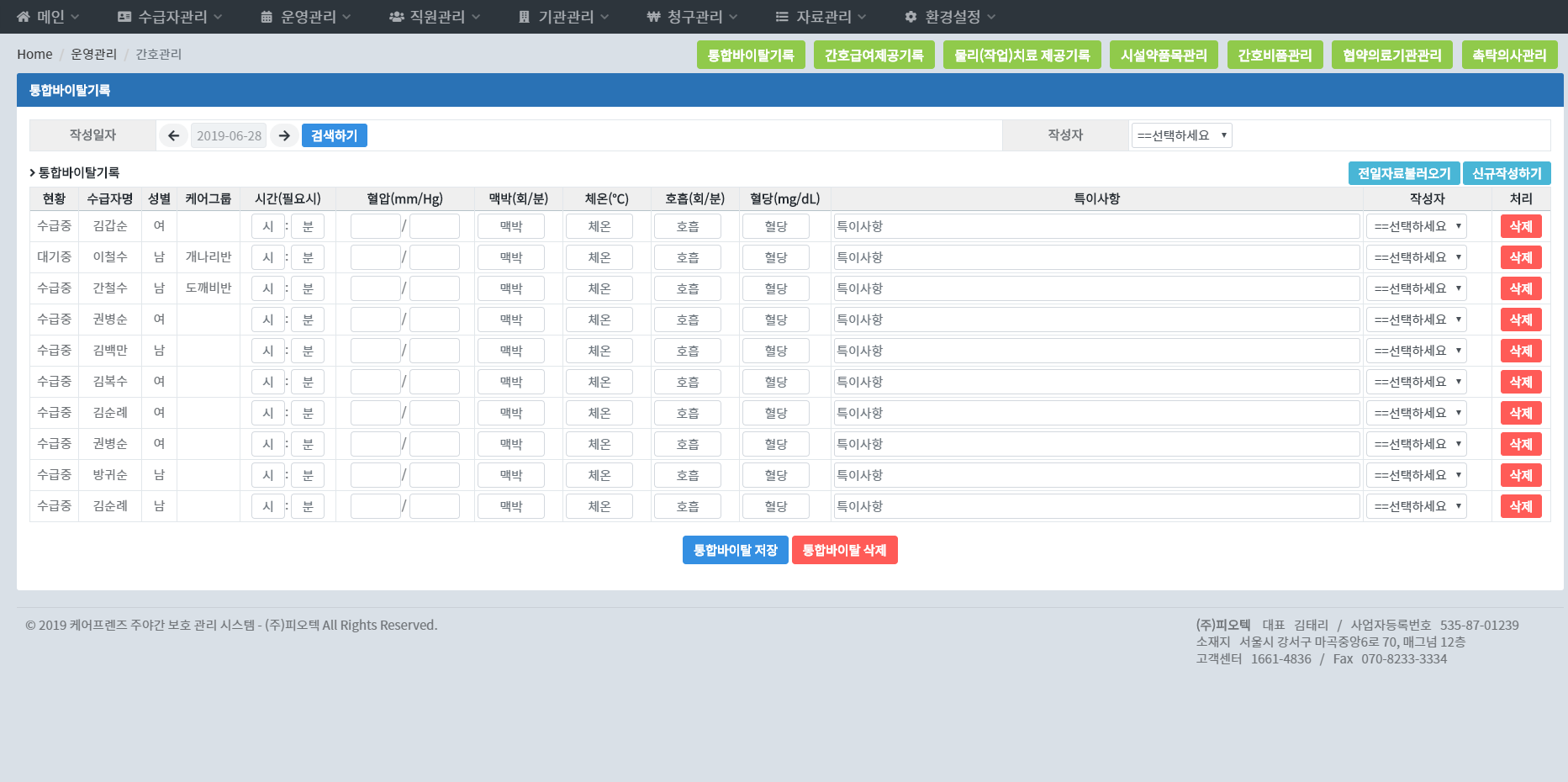 간호관리 메뉴로 요양원 분들을 간호 관리 부분을 상세적으로 입력 가능하게 되어있습니다.